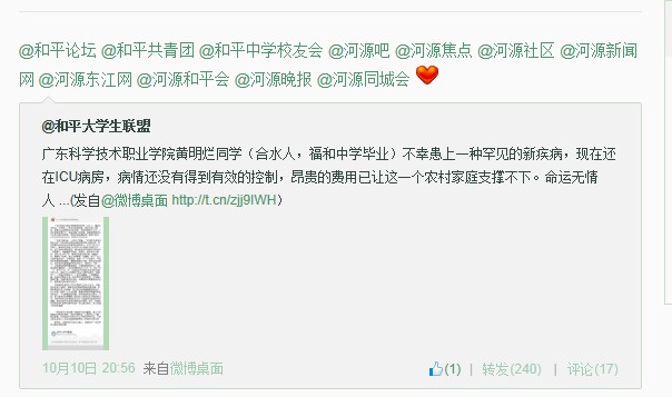 为了挽救黄明烂年轻的生命。在经济允许的情况下,伸出援助之手,献出一份爱心。